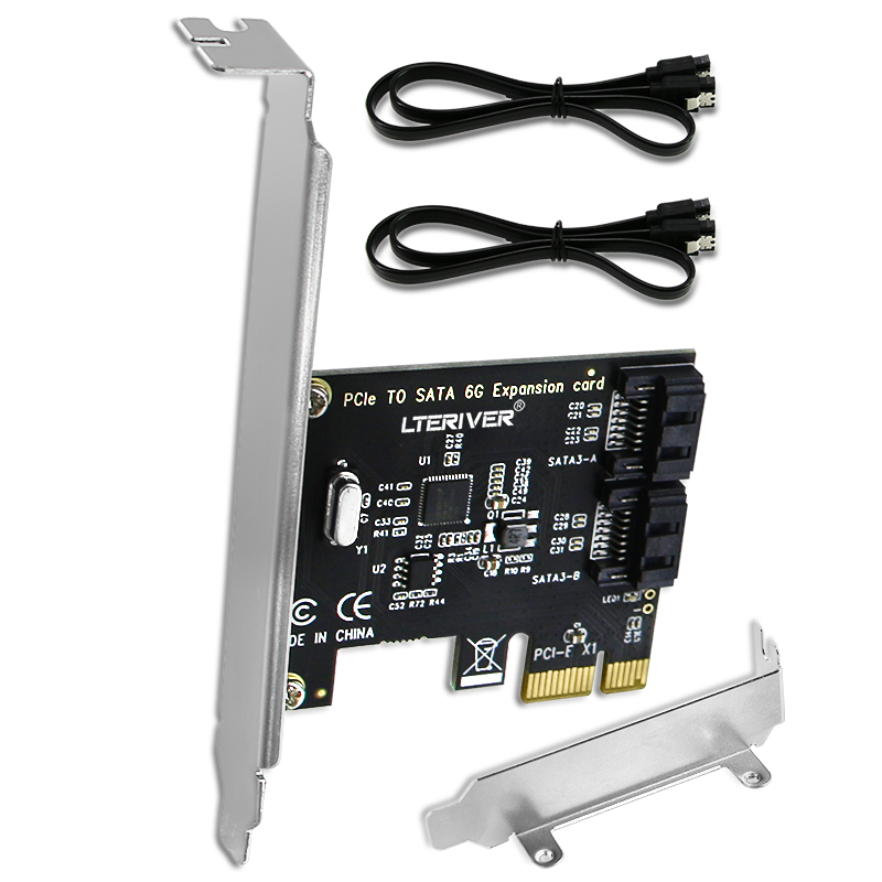 LTERIVER PCIE to 2-Ports Serial ATA/SATA 3.0 Host Controller Card, Plug and Play on Windows OS, MAC OS and Linux Kernel PCs, 2X 6Gbps Max SATA 3.0 None Raid Ports-Support AHCI Boot Up (PCE-G2S2)