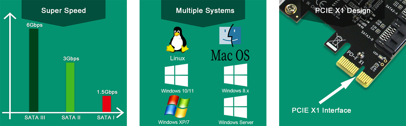 1. Select the ASMedia ASM1061 PCIE to SATA III Host Controller. Will Work on AMD, ARM and INTEL Hardware Platform.